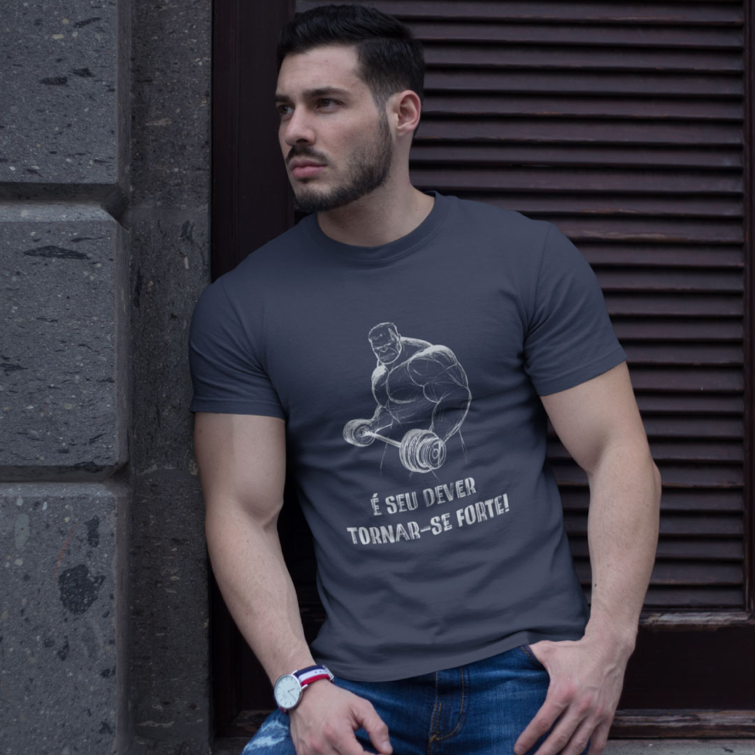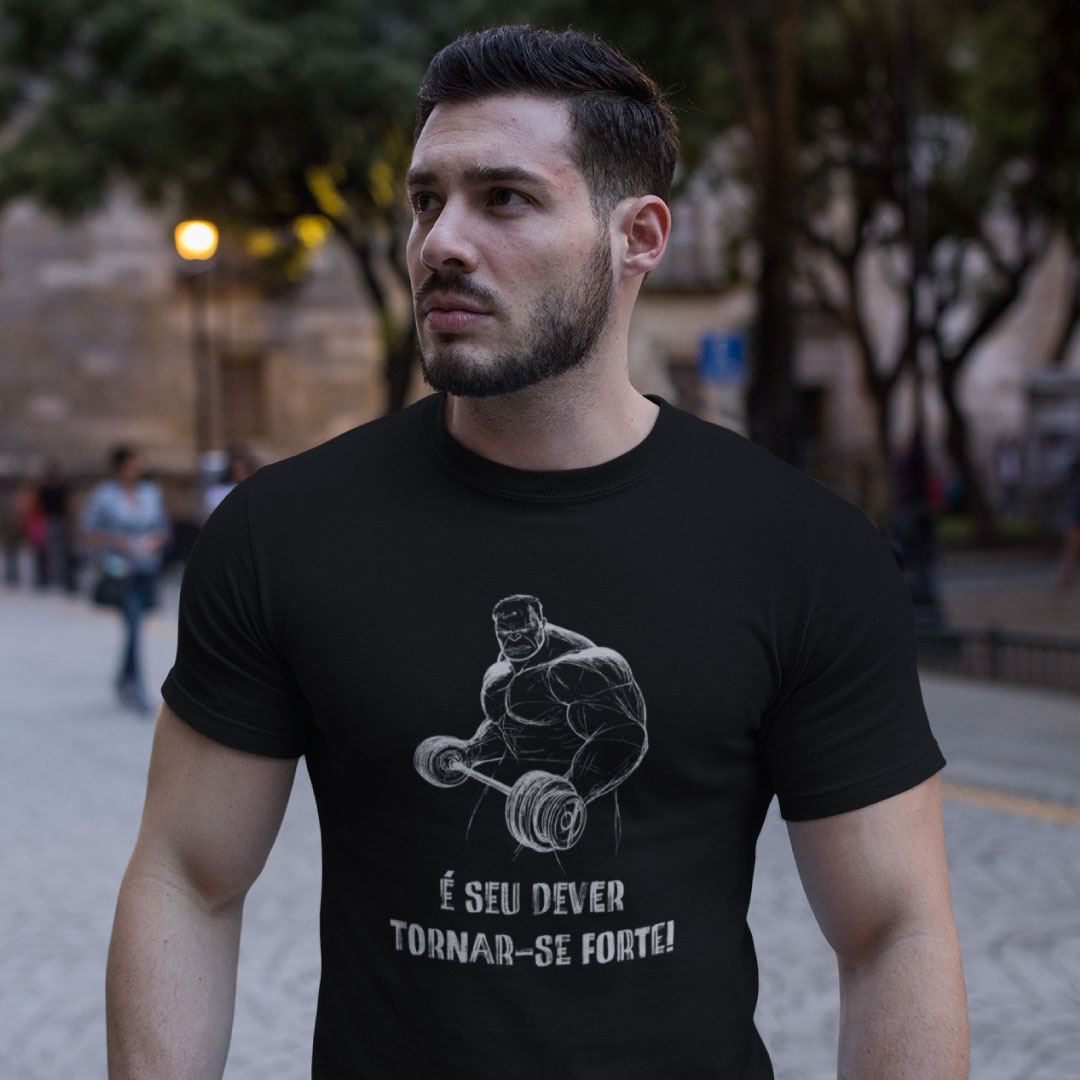 Esta camiseta carrega um chamado à responsabilidade pessoal: ser forte não é uma opção, é uma exigência da vida. No mundo real, ninguém escapa dos desafios. Por isso, desenvolver força psicológica, mental e física é mais que recomendável, é necessário.