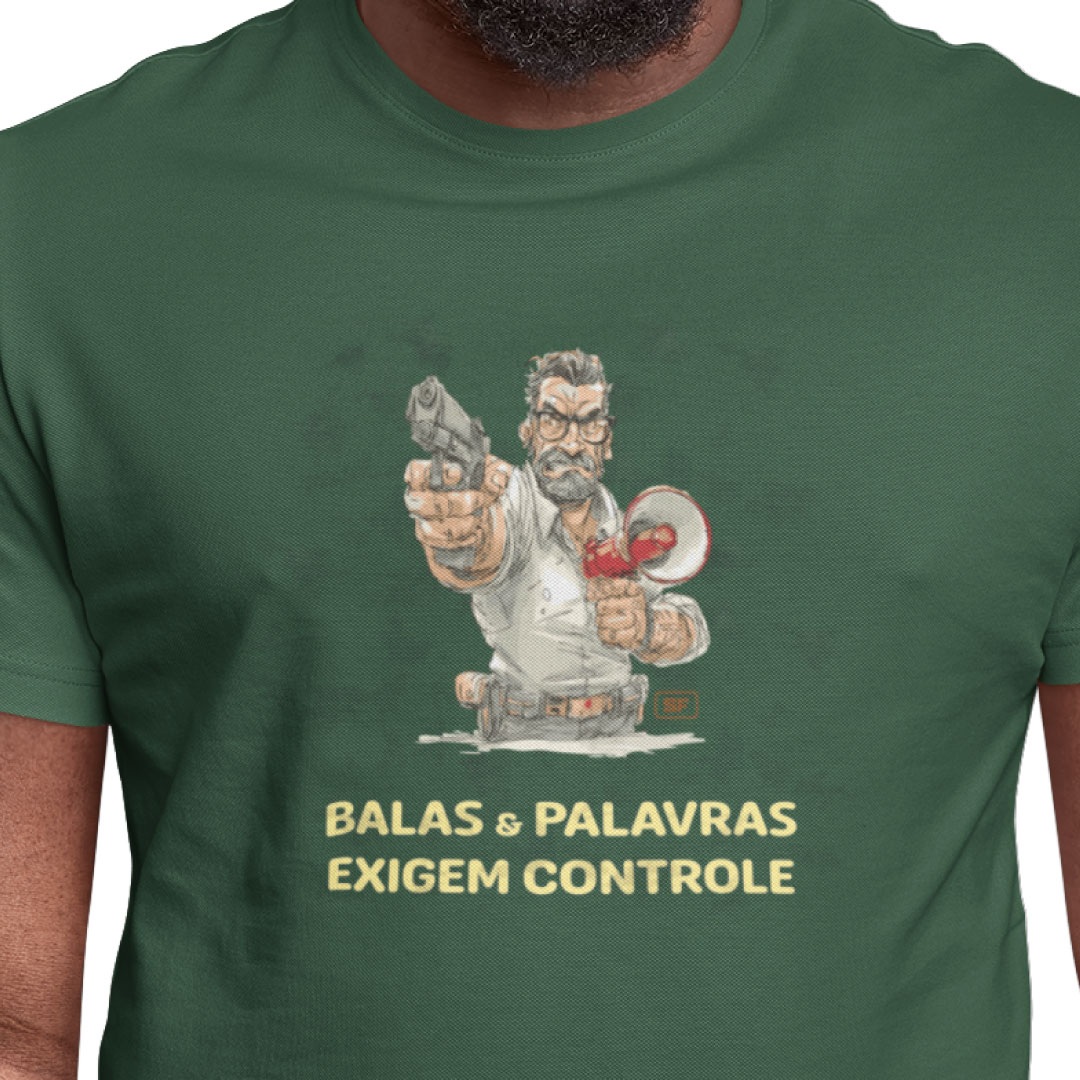 Há quem subestime o impacto do que dispara no mundo. Esta camiseta traduz, com sobriedade e firmeza, uma verdade que poucos dominam: tanto balas quanto palavras carregam consequências irreversíveis. Mais do que estilo, ela veste a postura de quem entende que poder sem controle não é força, é risco. Ideal para quem valoriza responsabilidade e consciência de que o verdadeiro domínio começa antes do gatilho e antes da fala.