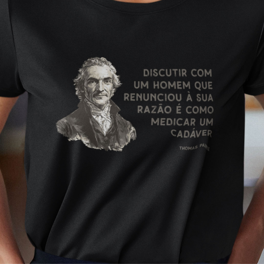 Esta camiseta traz uma mensagem poderosa, reflexiva, clara e impactante de Thomas Paine, consoante com quem valoriza o pensamento crítico e a razão e está cansado de perder tempo com quem não merece.