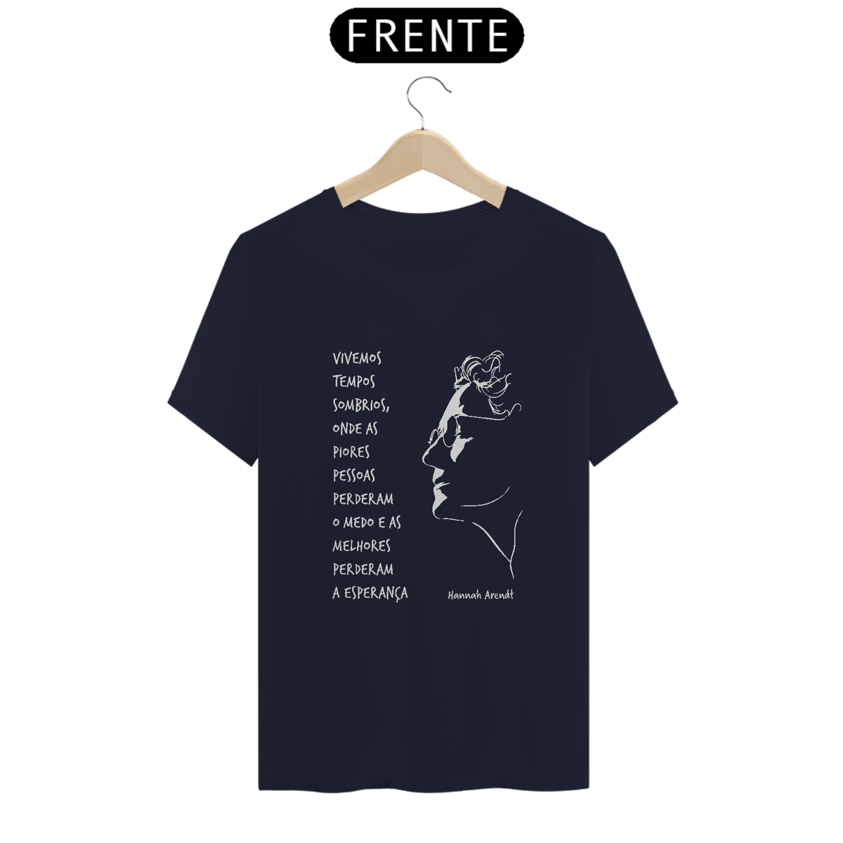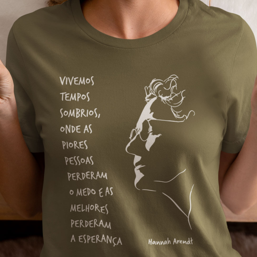 Estampada com uma das reflexões de Hannah Arendt, esta camiseta é mais do que uma peça de roupa: é um grito silencioso de lucidez em meio ao caos. Ideal para quem não aceita a banalização do mal e quer provocar reflexão por onde passa.